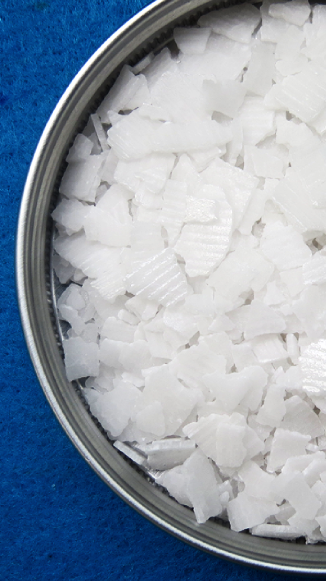 Su presentación en escamas facilita el manejo, almacenamiento y dosificación, convirtiéndola en una opción práctica y segura para operaciones industriales de gran escala.